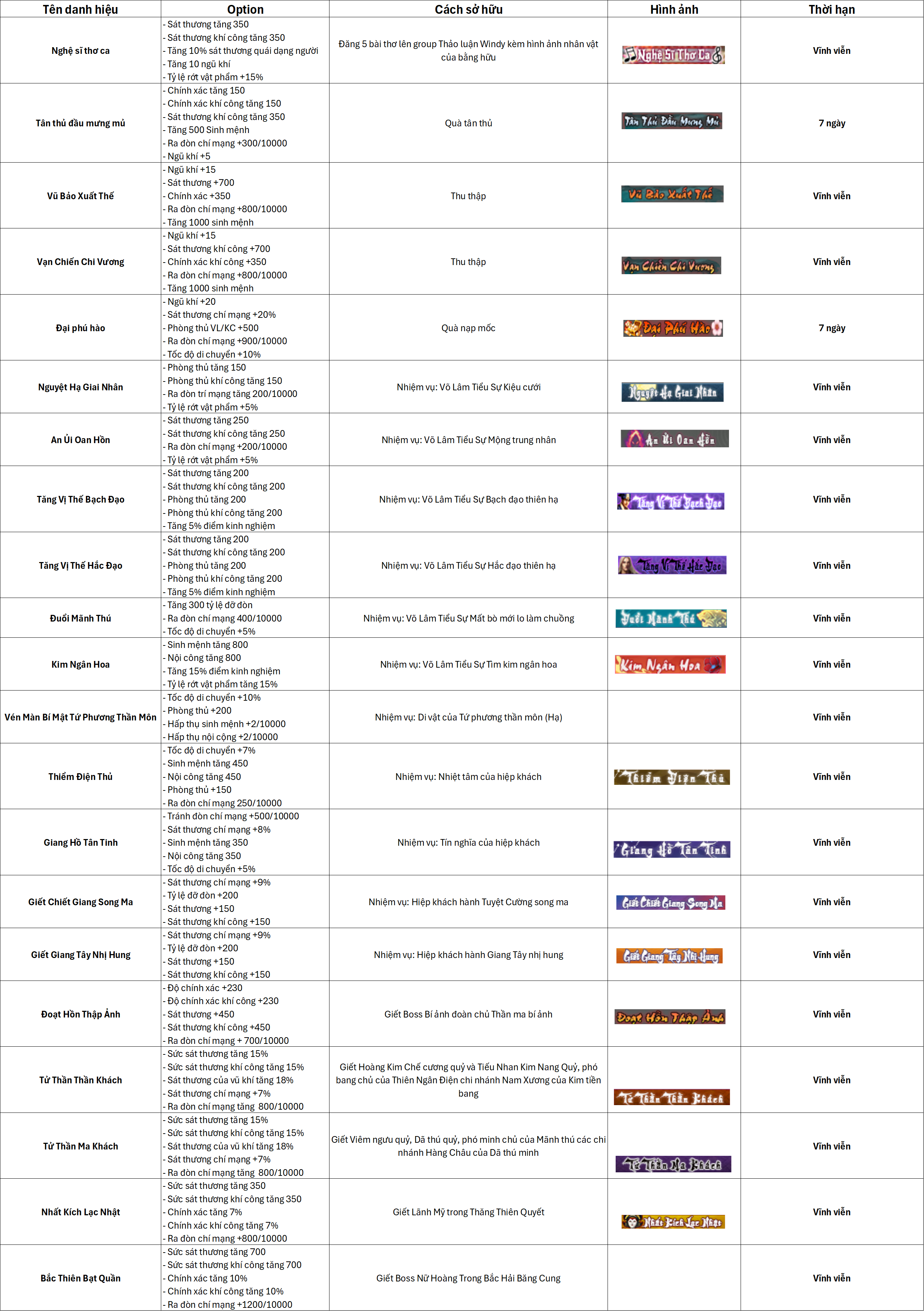 Mọi tài khoản mới đều được tặng Gift Code có 5 cái danh hiệu 7 ngày, Option rất mạnh, nó chỉ thua danh hiệu Đoạt Hồn và danh hiệu Phú Giáp Tứ Phương
